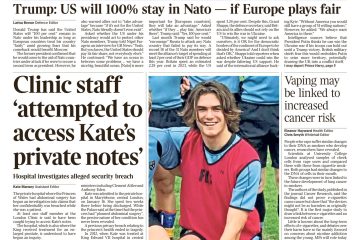 The Daily Mirror reports unauthorised personnel attempting to access Kate’s medical records post-surgery.