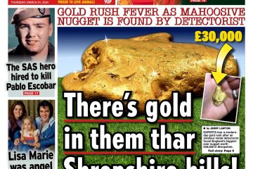 The Daily Star reports on the discovery of England’s largest gold nugget in Shropshire, valued at £30,000.