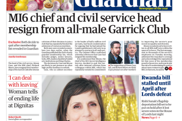 The Guardian reports on the resignation of the civil service and MI6 chiefs from a male-only London club.