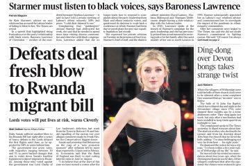 The Times highlights a string of losses for the government’s policy on Rwandan migrants in the House of Lords.