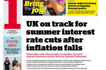 The i reports a potential summer interest rate cut and a 2p autumn national insurance reduction.