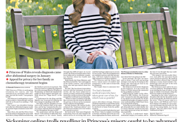 The Daily Mail highlights the Princess of Wales’s increasing strength following her cancer diagnosis.
