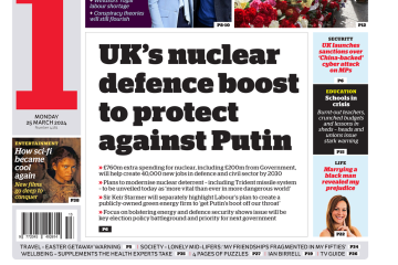 The i newspaper discloses a £760m nuclear investment for Trident’s upgrade.