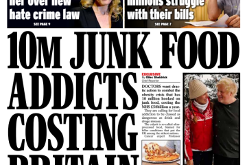 The Daily Express reports on doctors’ call to action against the £58bn junk food addiction affecting 10 million people.