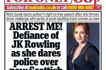 The Daily Mail reports on Rishi Sunak’s defence of JK Rowling amidst new Scottish hate crime laws.