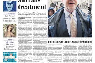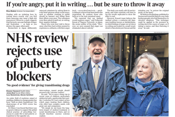The Times highlights a leading paediatrician’s report criticising NHS’s treatment of transgender youth.