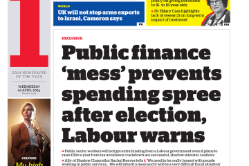 The i paper reveals no spending spree in public sector if Labour wins, citing financial chaos.