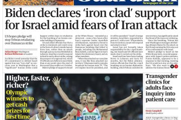 The Guardian reports on Joe Biden backing Israel as Iran threatens retaliation for the Syrian consulate bombing.