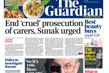 The Guardian reports on calls for Rishi Sunak to investigate the harsh prosecution of unpaid carers.