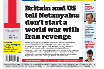 The i covers UK and US advising Israel not to ignite a war with Iran.