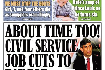 The Daily Express reveals Rishi Sunak’s plan to cut 70,000 civil service jobs to increase defence spending.