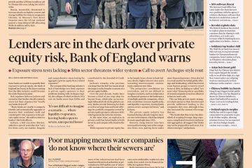 The Financial Times reports on the Bank of England’s alert about lenders’ ignorance of private equity risk.