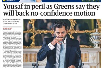 The Guardian reports on Humza Yousaf facing a no-confidence motion, supported by the Scottish Greens.