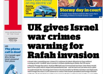 UK warns Israel of potential war crimes in Gaza, i paper reports.