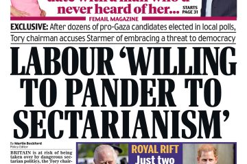 The Daily Mail highlights the Conservative party chairman’s caution about Britain’s vulnerability to “dangerous sectarian politics”.