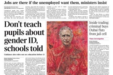 The Times reports on proposed alterations to sex education, advising schools to sidestep gender identity discussions.