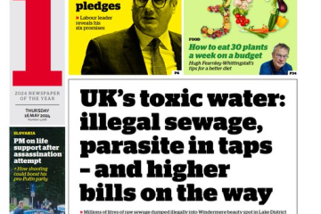 The i highlights the UK’s water crisis, with a boil notice in Devon and sewage issues in Windermere.