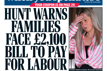 The Daily Mail reports on Chancellor Jeremy Hunt’s warning of a £2,100 tax increase for families if Labour wins the upcoming election.