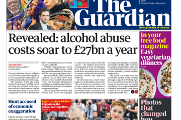 The Guardian reports on a study revealing the £27bn annual cost of alcohol abuse in England.