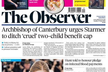 The Observer reports on the Archbishop of Canterbury’s urgent appeal to the government and Labour party to end the two-child benefit limit.
