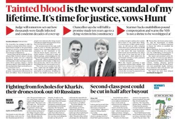 The Sunday Times reports on Chancellor Jeremy Hunt’s commitment to a victim of the NHS contaminated blood scandal, as a compensation package is set to be announced.