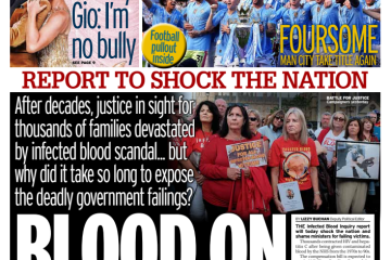 The Daily Mirror anticipates a national shock and ministerial disgrace following Monday’s release of the infected blood scandal report.