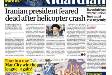 The Guardian highlights fears for the Iranian president’s life following a helicopter crash in the country’s mountains.