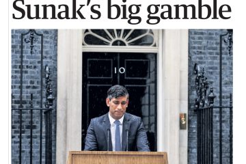 The Daily Telegraph highlights Rishi Sunak’s risky snap election gamble.