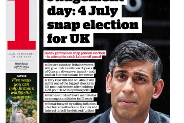 The Financial Times reports on Rishi Sunak’s decision to call a general election, having lost hope for economic improvement by autumn.