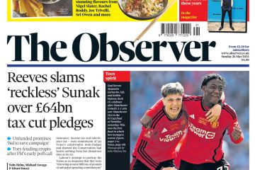 The Observer reports on Rachel Reeves’ claim of the Tories’ £64bn in unfunded election promises.
