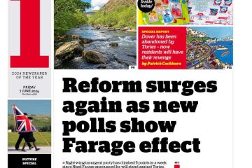The i newspaper highlights a poll showing the Reform party gaining popularity over the Conservatives.