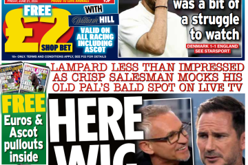 The Daily Star reveals Frank Lampard’s displeasure at Gary Lineker’s insinuation about his bald spot.