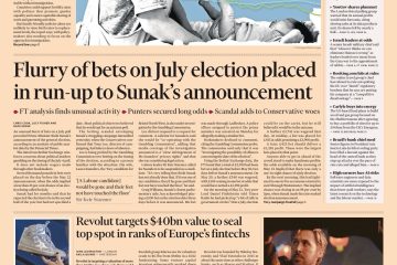 FT analysis has detected unusual betting activity on a July election before Sunak’s pending announcement, with punters securing long odds amid the scandal-stricken Conservative party.