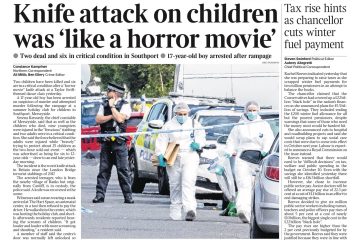 The Daily Mirror reports on a “horrific knife rampage” in Southport.