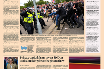The Financial Times highlights Sir Keir Starmer’s remarks on the recent riots in various English towns and cities.
