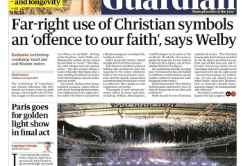 The Guardian reports the archbishop of Canterbury urged Christians to avoid far-right groups and condemned the misuse of Christian imagery in recent riots as offensive to the faith.