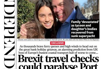 The Independent features tributes to Hannah and Mike Lynch, with the main story highlighting a warning from the Port of Dover about post-Brexit checks potentially paralysing the hub by Easter.