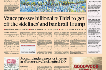 The Financial Times reports on JD Vance urging a tech billionaire to fund Donald Trump’s election campaign.