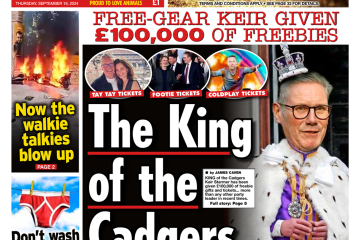 The Daily Star highlights Sir Keir Starmer receiving £100,000 worth of gifts and tickets, initially reported by Sky News.