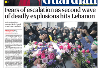 The Guardian reports concerns of increased conflict in the Middle East following a second series of fatal explosions in Lebanon.