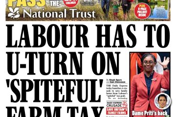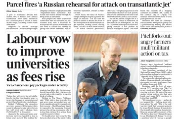 The newspaper reports on Labour planning a reversal of a policy related to a contentious tax on farms, following a campaign to protect family-owned farms from financial strain.