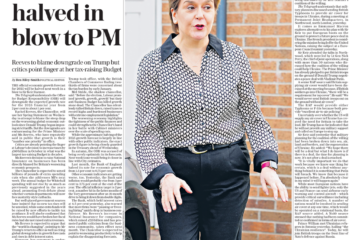 The official growth outlook has been cut in half, dealing a blow to the PM’s standing as commentators cite increased taxes and global pressures for causing the downgrade.