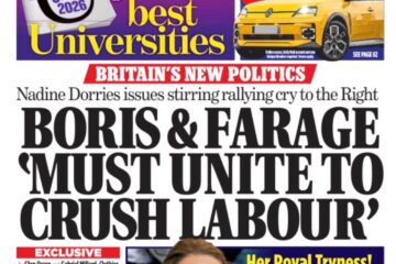 Nadine Dorries has called for Boris Johnson and Nigel Farage to join forces in order to prevent Labour from winning the next general election, arguing that only their combined effort can unite the right and defeat Sir Keir Starmer’s party.