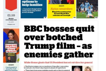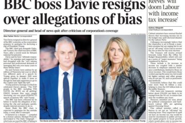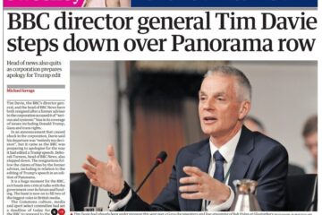 Tim Davie resigned as BBC director-general, and head of news Deborah Turness also quit, after criticism of coverage and a misleading edit of a speech by President Trump. The BBC apologised, ordered an independent review, and begun the process to appoint successors.