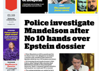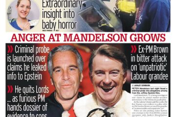 Police have opened a criminal probe into allegations Lord Mandelson leaked market-sensitive information to Jeffrey Epstein. He has quit the Lords. The PM has passed a dossier to officers, and Gordon Brown has criticised him as unpatriotic.