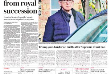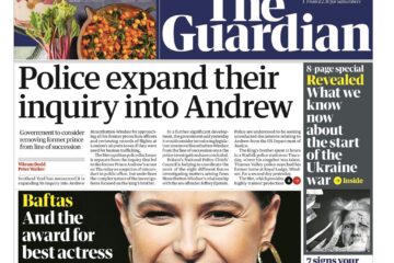 Guardian Front Page 21st of February 2026