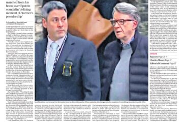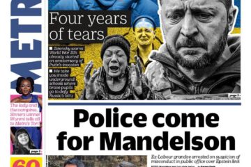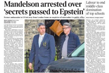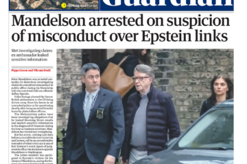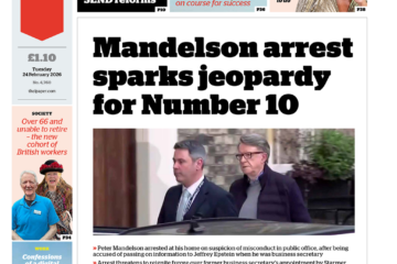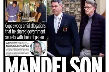 Police arrested Lord Mandelson in London on suspicion of misconduct in public office amid an inquiry into whether sensitive government information was shared with a disgraced financier. His home was searched and he was questioned. He denies wrongdoing. No charges have been filed.