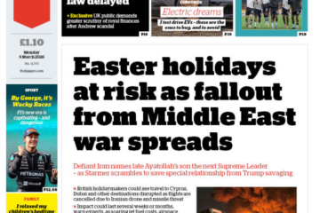 Daily Mirror Front Page 9th of March 2026