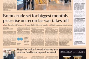 Daily Telegraph Front Page 1st of April 2026