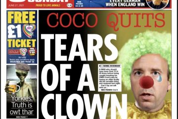 The Daily Star Sunday likens Matt Hancock to a clown following his resignation on Saturday evening.